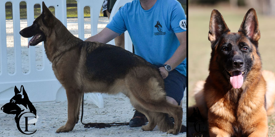Infinity Canine Extreme is a stunning female with super character and willingness to please. Her work ethic is unparalleled and more important she is wonderful with the family and incredibly social. Infinity impressed us from a young age and there was no question that she was something special. Infinity is currently IGP2 and has been V rated under many SV judges.