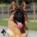 The mother of Power is Hilla vom Herzbach who is a German shepherd who truly stands out. She has a great structure as well as nice angulation, all wrapped up in outstanding pigmentation. This structure and pigmentation shows in her V rating and continue into her IPO1 and KKL. Her father is a World Champion male, Pacco vom Langenbungert. Pacco is rated VA3 (BSZS’15), IPO3 & KKL. Pacco is a powerful male with a deep red pigmentation, masculine body type, and flawless work ethic. This top male was a showstopper in the ring and simply flawless to watch. Pacco is a wonderful representation of his bloodline and what good genetics can produce. His father is a 2X VA1 (BSZS’11 &’12) World Champion and titled in SCHH3 & KKL. Pacco’s mother (Ankaa vom Nadelhaus) was a highly rated female at the 2011 BSZS, coming in at V19. The mother to Hilla is a stunning female named Ully vom Herzbach. Ully is a 3 x V rated female who has a wonderful structure, pigmentation, and movement. She has been known to pass these traits onto her progeny, with 3 of them going off to receive their V rating as well.